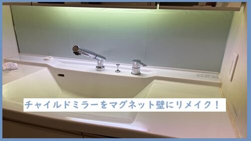 洗面の鏡をマグネット収納壁にリメイク「チャイルドミラーの水ハネとおさらば!」