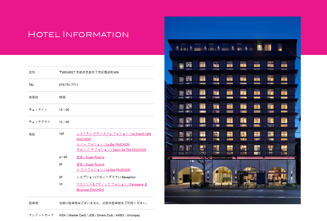 フォションホテル京都は既存のホテル(サンルートホテル)を全面改築し、2021年3月にオープンしたそうです。