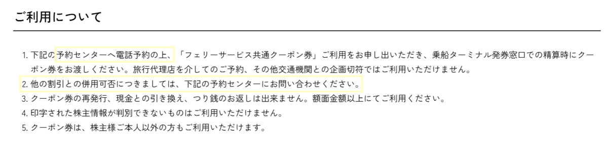今回は上記の通りWEB割引は諦めましたが、今後また利用する可能性もあるので優待クーポンとの併用の方法について電話で伺いました。