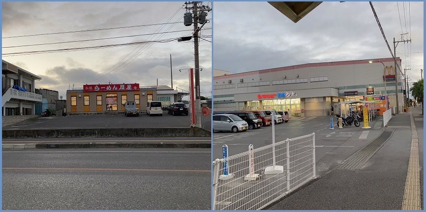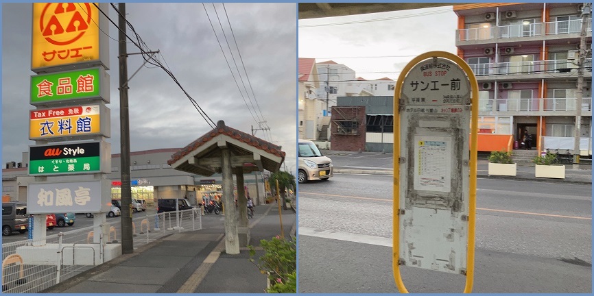 この国道390号線は石垣空港からバスターミナルを結ぶ路線で、バス停もお店も結構あります。