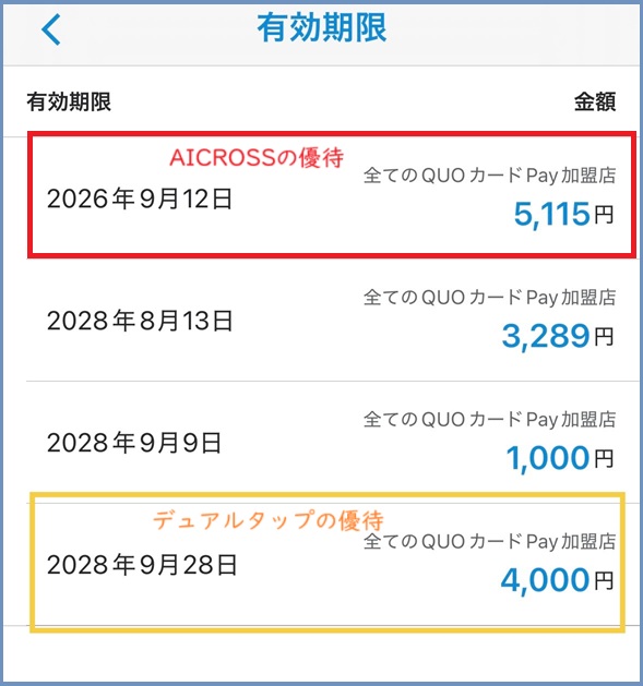 こちらは私のスマホのQUOカードPayアプリの有効期限です👇