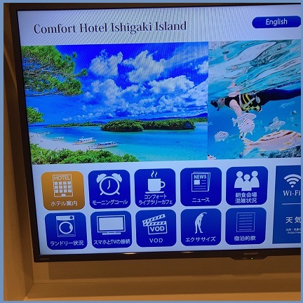 客室のテレビで詳しい案内やランドリー状況等が確認できます。