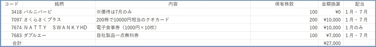 1権利銘柄優待の金額を換算すると、全部で27,000円です。