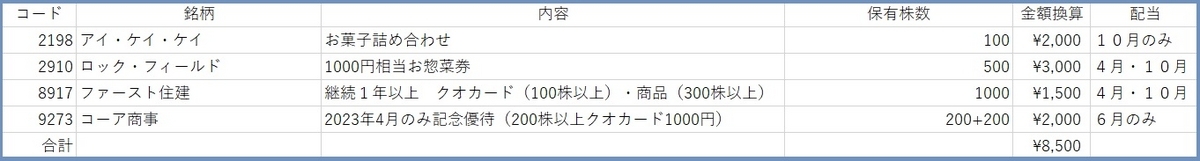 コーア商事の記念優待を合わせて4銘柄を保有中です。
