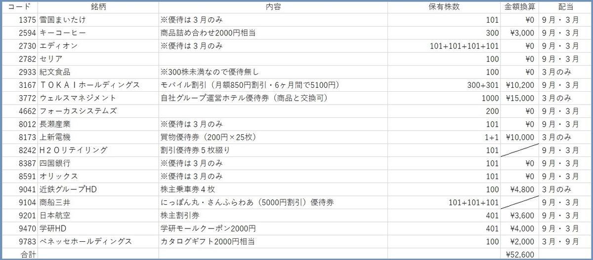 そこで、現時点で保有している9月銘柄をまとめてみました。
