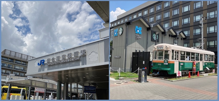 駅を降りると京都鉄道博物館の入り口も見えますし、公園内にはスタバもあります。
