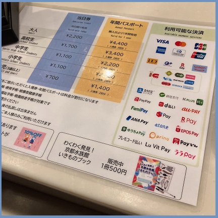京都水族館ではクレジットカード決済の他にも様々なキャッシュレス決済が利用可能でした。
