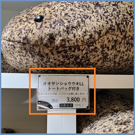 この日はオオサンショウウオのぬいぐるみはLLサイズのみしか在庫がありませんでした。
