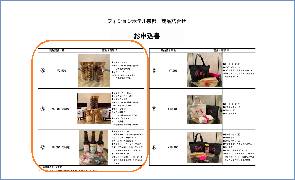 今回はフォションホテル京都の商品詰め合わせを選択しました。