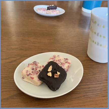 到着したその日にチョコレートアーモンドラスクとラズベリーラスクを頂きました!
