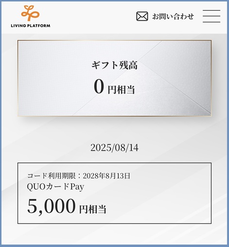 デュアルタップの優待はデジタルギフトでクオカードペイが頂けます。