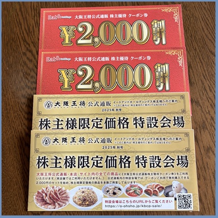 イートアンドの優待は大阪王将公式通販で利用できるクーポン2000円分です。