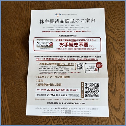 以上、2025年後半に到着した優待品一覧でした。