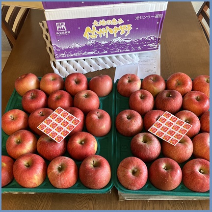 りんごの種類は「サンふじ」で10㎏(36玉)です。